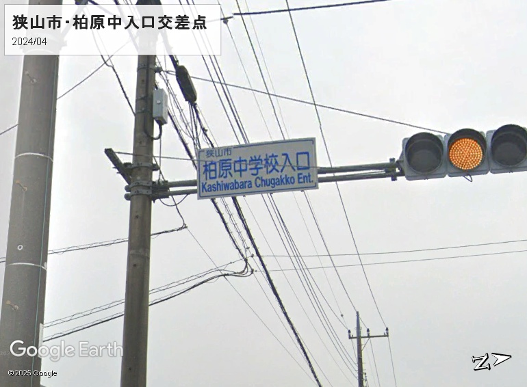 狭山市については、柏原中学校入口の交差点で「Kashiwabara」を確認することができました。