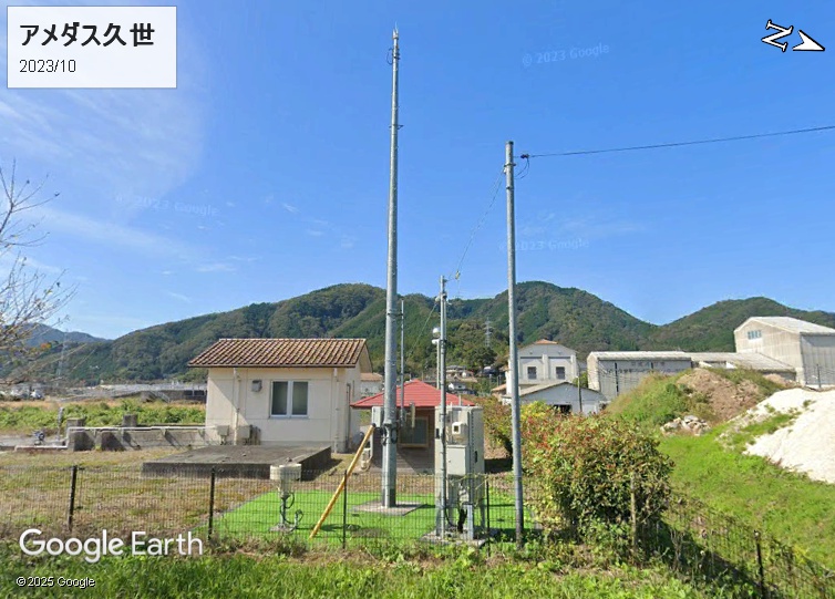 当時のアメダス久世は今の真庭市役所の敷地内にあったようです(上の地図の赤マーカー)。2009年3月に現在地(青マーカー)に移転しています。約750m南に移転し、標高は145mから144mになりました。