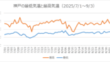 最低気温の最高は戦前の記録を20世紀中に越えていて、2023年8月10日にはスーパー熱帯夜に迫る29.8℃でした。他地点と同じように温暖化していることに変わりはなく、単に40℃近くに達する気温が出にくい環境にあるだけです。