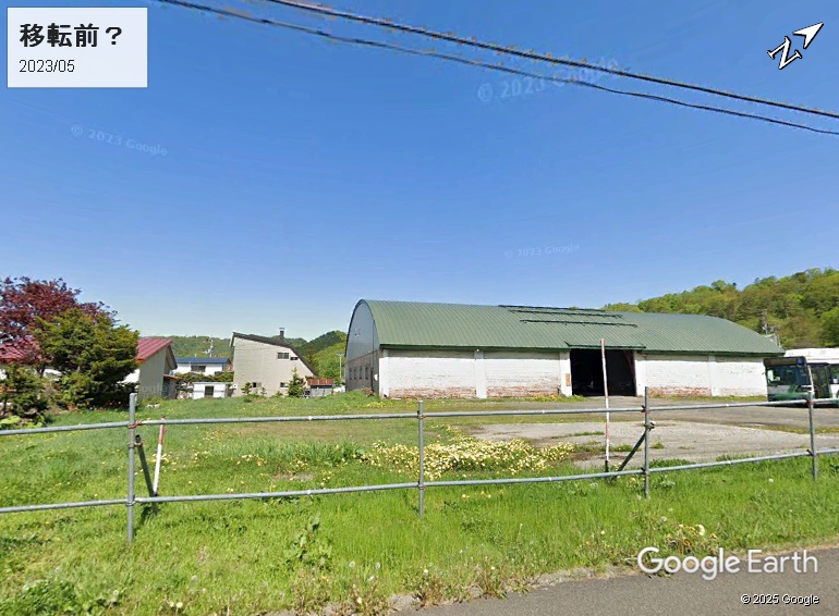 移転前の所在地は次のストビュー付近ではないかと思われます。看板や表札などはありませんが、除雪関係の施設として利用されているような気配が漂います。場所を含めて確かなことはわかりません。移転前の標高は350mとされていますが、実際は340m台前半と思われます。