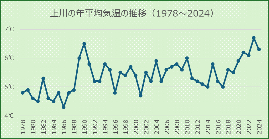 | 年平均気温 | 6.3℃ | 906位 | /916地点 | 白滝 |