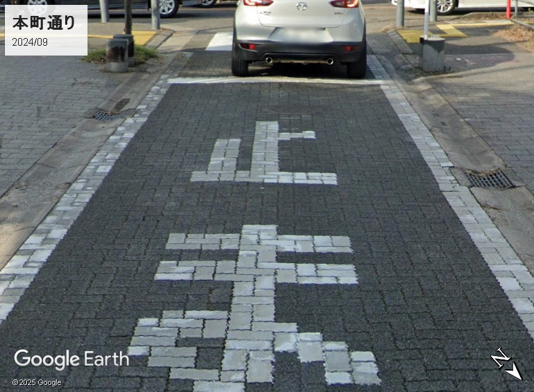 アーケードは200m足らずですが、その先も路面がタイル舗装です。タイル舗装が終わるのは白山公園です。次の画像なら、「止」の2画目が右上がり横棒であることが明白です。