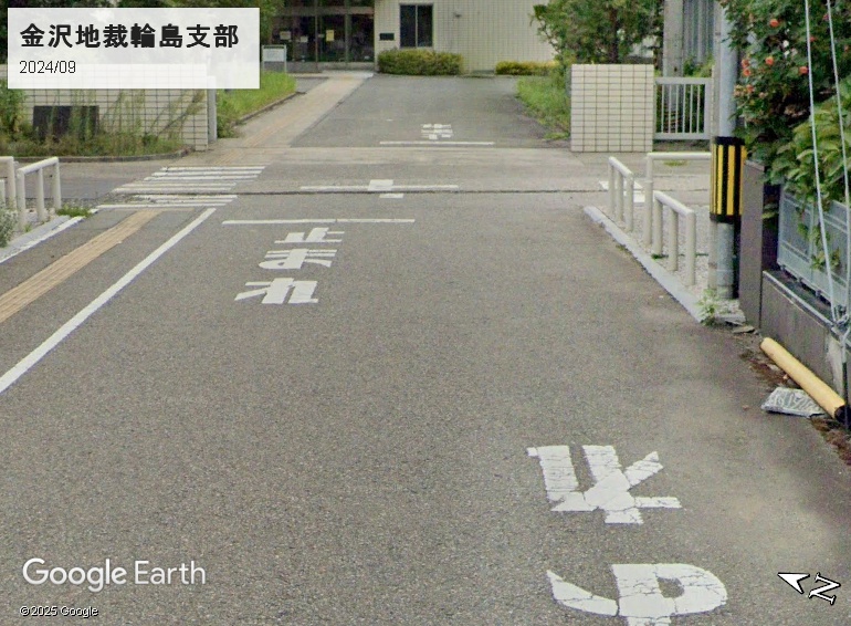 富山県の「止まれ」は東京タイプですが、岩手のようにもともとは設置なしパターンだったのかもしれません。富山を挟んで石川は大阪タイプです。次の画像の3個の「止まれ」は東京タイプですが、実は金沢地裁輪島市部の敷地のようです。
