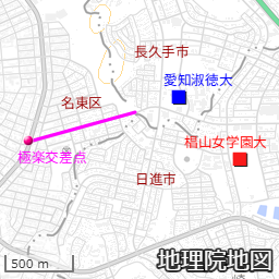 俗にSSKと称される3つの(元)女子大のうち、淑徳と椙山はキャンパス配置が似通っています。青マーカーが淑徳、赤が椙山です。本部は淑徳が長久手、椙山が星が丘です。
