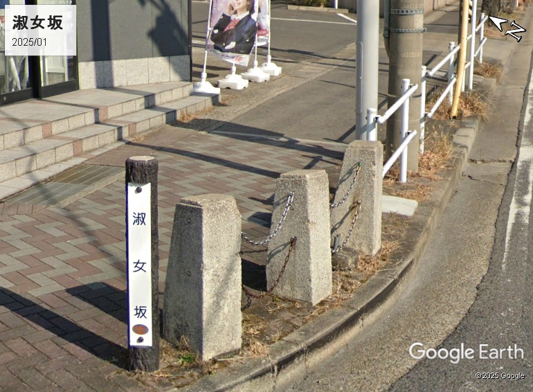 この交差点から東に向かう通りは「淑女坂」と名付けられています。