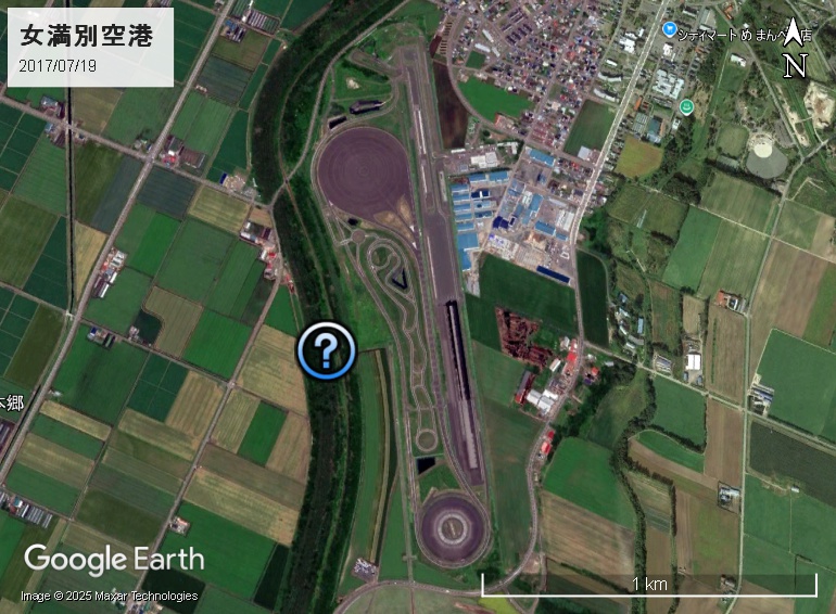 北海道・大空町にある女満別空港の航空写真を見ていたら、空港の北側隣接土地に謎めいた施設があることに気づきました。