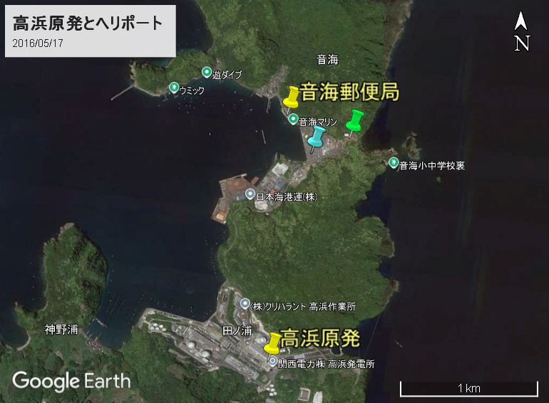 水色マーカーの関電駐車場には画像左下にヘリポートが設けられています。
