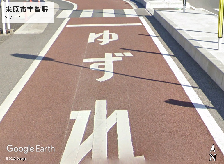 ただ、米原市宇賀野のラウンドアバウト交差点「ゆずれ」標示の「れ」は、1枚目の「れ」とは明らかに異なる形状で大阪タイプそのものです。