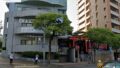 天神橋筋商店街のアーケードを横切る際は縦標示「止まれ」ですが、駐車場から出たあとは一方通行ですから、必ず横標示「止まれ」にぶつかります。ピンクの星印には鳥居がありますが、ここは一通の出口です。推奨されているタクシーの降車場所も表門です。