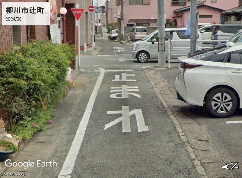 「れ」の1画目縦棒は左配置ですが、1画目の縦棒が2画目右払いより下(手前)に飛び出しています。書道的にはこれが「美しい」のかもしれません。次のストビュー画像は東京タイプ標準の福岡県柳川市です。