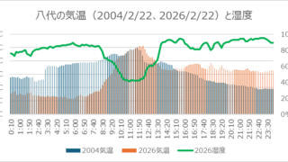 アメダス アメダス八代が最高気温全国1位、22年ぶりに2月の夏日 本土最早の全国1位昨日(2/22)の最高気温全国1位はアメダス八代でした。八代を含めて全国56地点で2月の最高気温を更新しています(タイ記録8地点を含む)。次表第3列は昨日の最高気温、第5列はこれまでの2月最高気温、第8列は更新幅です。観測... 2026.02.23 アメダス