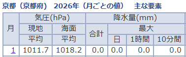 2026年1月の月平均気温