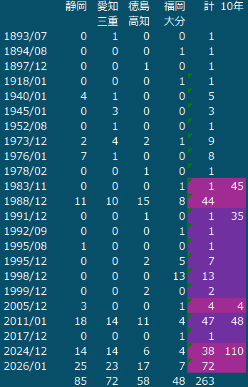 | 大分* | 1887/1 | 1669 | 10 | 0.6% | 2026/01 | 2024/12 |