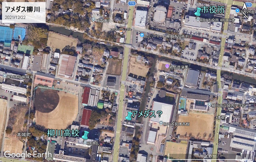 アメダス柳川は柳川消防署にあるらしいのですが、市街地立地で敷地に余裕のない建物ですので、屋上設置と思われます。