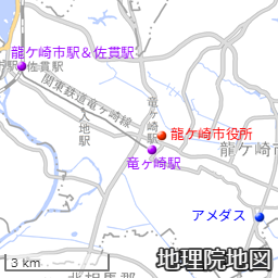 アメダス名称は雨量のみ観測から気温観測などが加わった1978年12年に「竜ケ崎」から「龍ケ崎」に変更されています。移転した形跡はありません。