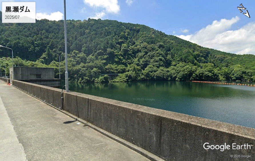 石槌山北麓には加茂川が流れており瀬戸内海に注ぎます。途中には黒瀬ダムがあります。2025年7月撮影のストビューです。ほぼ満水の状態なのだと思われます。