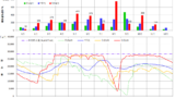昨日の25.8℃は午前中に観測されたものですが、前回2004年もやはり午前中の夏日でした。棒グラフが気温、折れ線は昨日の相対湿度です。