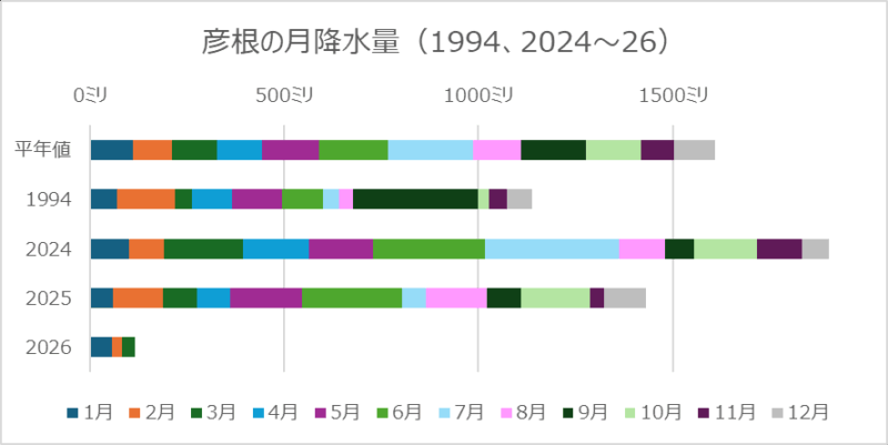 京滋は少雨地域というほどではありませんが、月1ミリ未満はきわめて少ないようです。