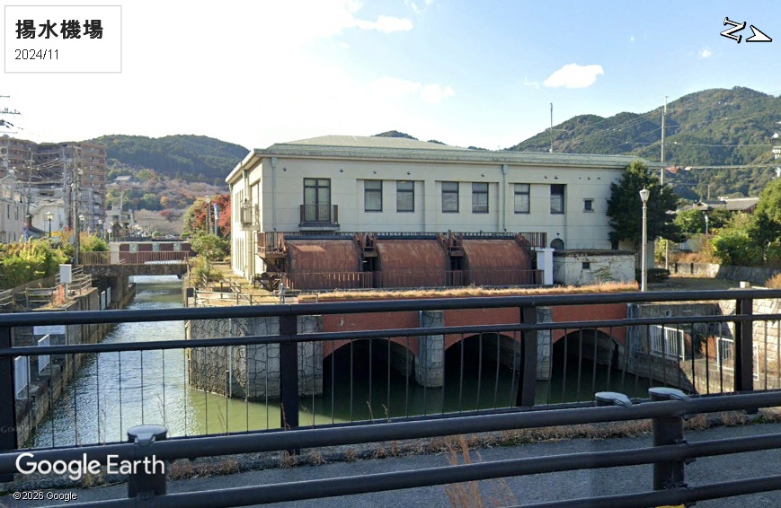 1885年6月に起工式が行われた琵琶湖疏水第1疎水の竣工式典は1890年4月に行われています。第2疎水の取水口は別でこの北側(ストビューでは右)に設置されています。