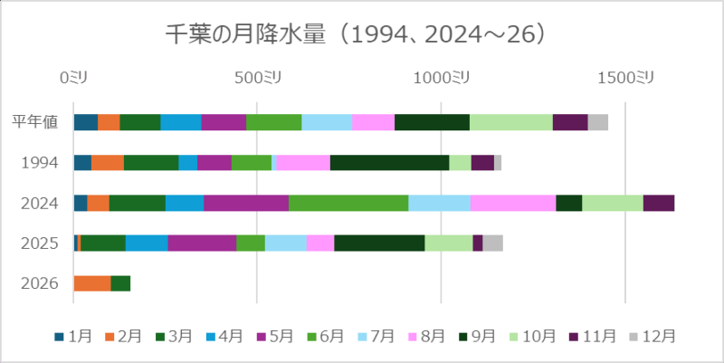 東京では去年の6月から今年の1月まで8か月連続で、平年の月降水量を下回っています。2月で途切れたとはいえ1.5ミリ多かっただけです。今後の雨予報はありますが、3月も平年未満となりそうです。
