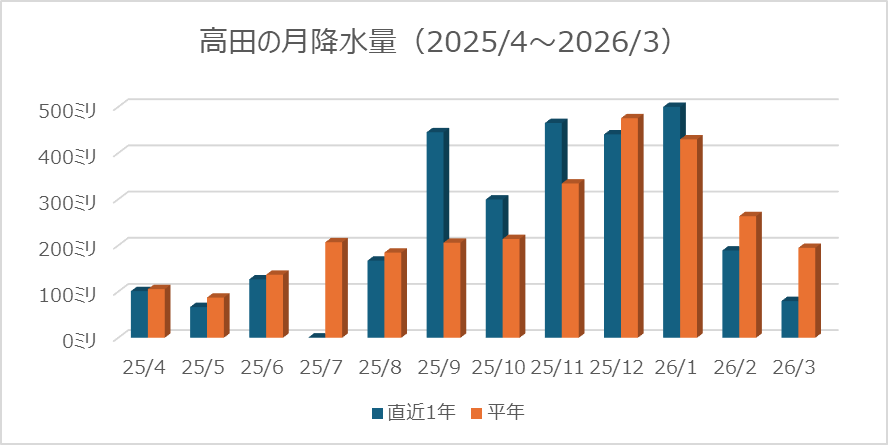 月降水量は上越市の高田と沖縄の久米島で3月の最少記録でした。昨夏の上越市の「渇水」は導水管の破断で主力となる浄水場が機能停止になったことが直接の原因です。これに月0.5ミリだった7月の少雨が重なり、かんがい期だったことで給水制限に発展しました。