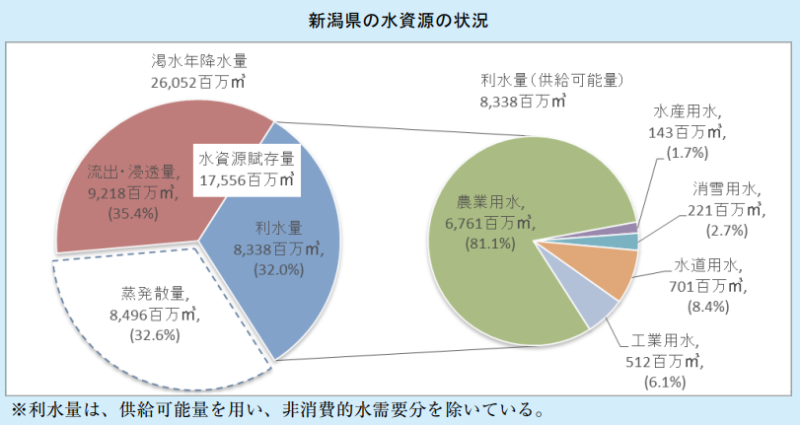 コメ生産量全国1位の新潟では、農業用水が81%を占めます。