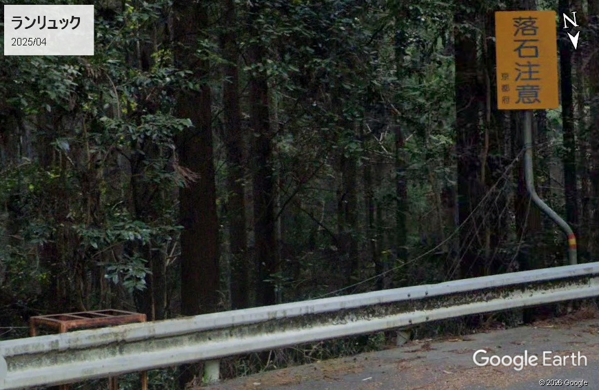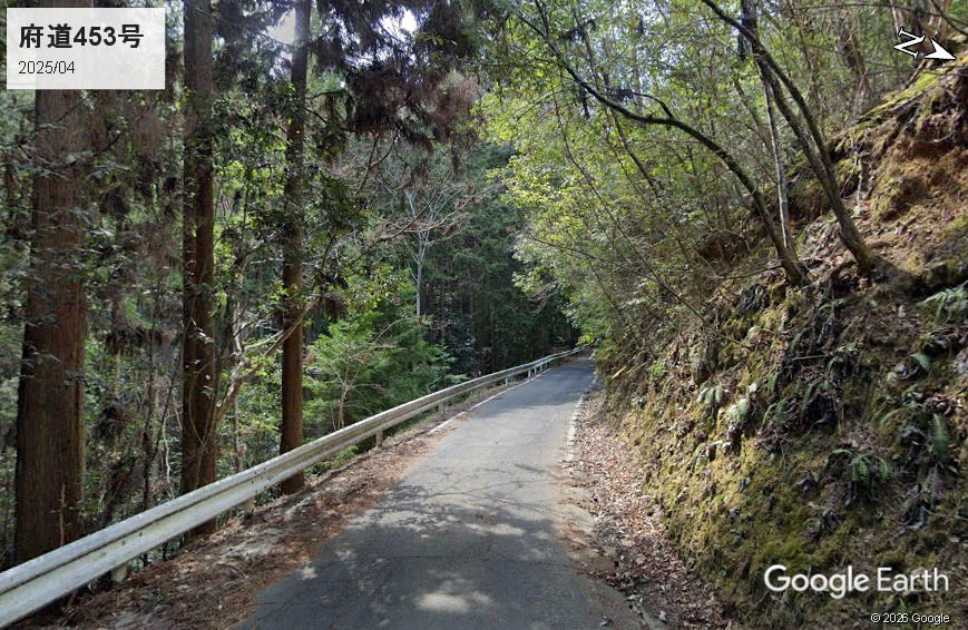 発見場所はガードレールの外側だそうです。一応は府道ですが、峠道区間に大型車は入れません。センターラインもなく、対向車が来れば離合できる場所は限られます。